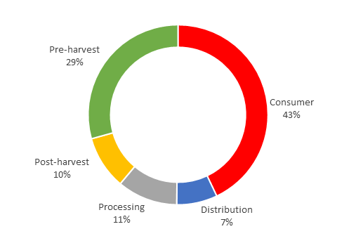 More recently, a 2019 study by Second Harvest and VCM International found that consumers are only responsible for 14% of total FLW in Canada or 21% of total avoidable FLW in Canada, whereas the production stage is responsible for the highest proportion, equivalent to 24% of total FLW and only 6% of avoidable FLW each year. The main reasons behind FLW during the production stage include imperfect shape or size, excess supply, cancelled orders, market price below cost of production, and the inability to harvest crops at peak quality due to labour shortages.